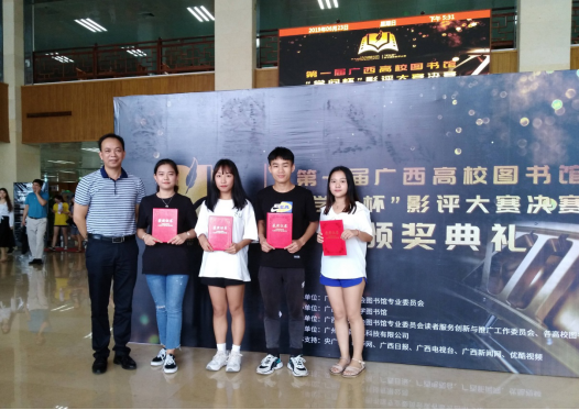 6月23日,由广西高教学会图书馆专业委员会主办、广西民族大学图书馆承办的第一届广西高校图书馆“学问杯”影评大赛决赛暨颁奖典礼在广西民族大学西校区图书馆隆重举行。来自区内35所本科院校、高职高专院校的学生共180多人参加了本次决赛与颁奖典礼,广西日报、广西电视台等多家区内知名媒体到会进行报道。我校图书馆陈一红副馆长、梁永忠老师及4名入围决赛的学生参加了本次活动。
