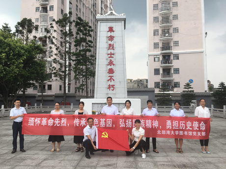 根据学校、机关党委“不忘初心、牢记使命”主题教育的统一部署,10月15日,图书馆党支部全体党员到牛圩坡烈士纪念碑、刘永福故居开展“缅怀革命先烈,传承红色基因,弘扬民族精神,勇担历史使命”主题活动,接受革命传统和爱国主义教育。
