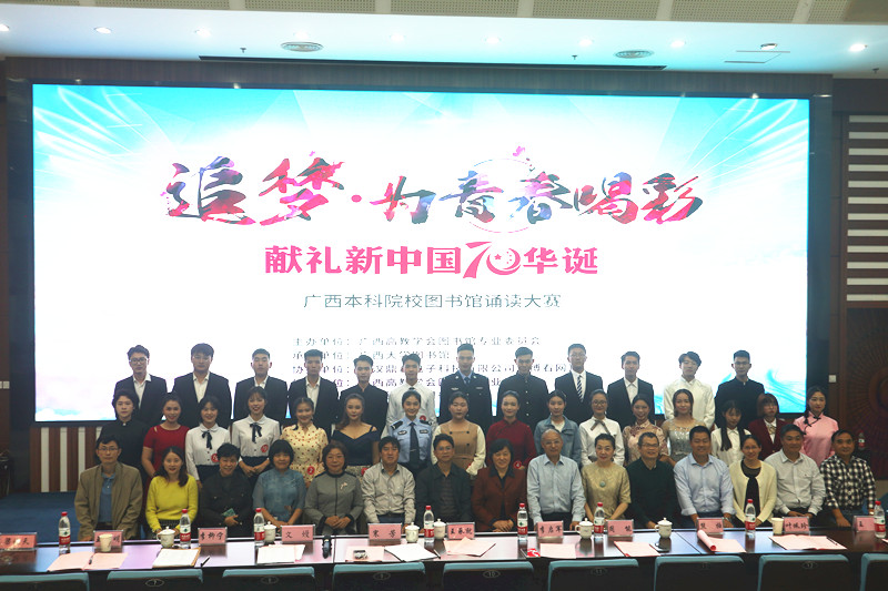 为献礼新中国70华诞,充分展现当代大学生与祖国同行、与时代同行、与梦想同行的精神风貌,展示我区青年学子高尚的人生追求、高雅的审美情趣和出色的艺术才华,由广西高等教育学会图书馆专业委员组织、全区本科院校图书馆联合举办、广西大学图书馆承办的广西本科院校图书馆诵读大赛现场决赛于11月23日在广西大学图书馆举行。