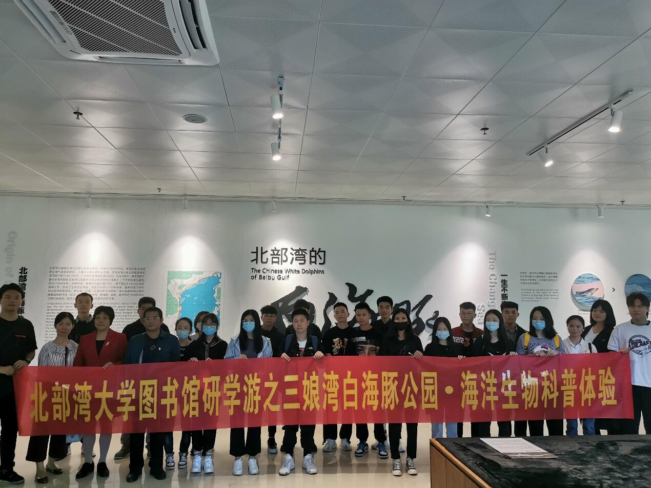 为让我校大学生了解更多的海洋生物科普知识,参与到保护海洋生物、保护绿色家园的活动中。近日,北部湾大学图书馆与钦州市图书馆联合组织学生、社会读者等,走进三娘湾白海豚公园海洋生物科普体验馆,开展“逐浪北部湾·探索白海豚”研学游活动。