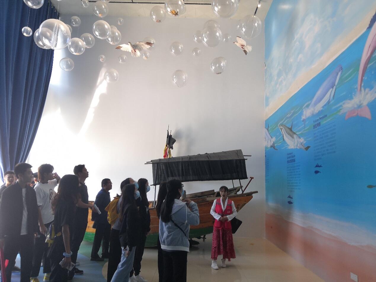 三娘湾白海豚公园海洋生物科普体验馆是钦州市首个集展示、体验、科普教育于一体的海洋生物科普体验馆。学生通过参观科普教育长廊、海洋科普环保知识长廊、海洋科普宣传视频、生物标本展示等,详细了解了有着“海上大熊猫”之称的中华白海豚世界。