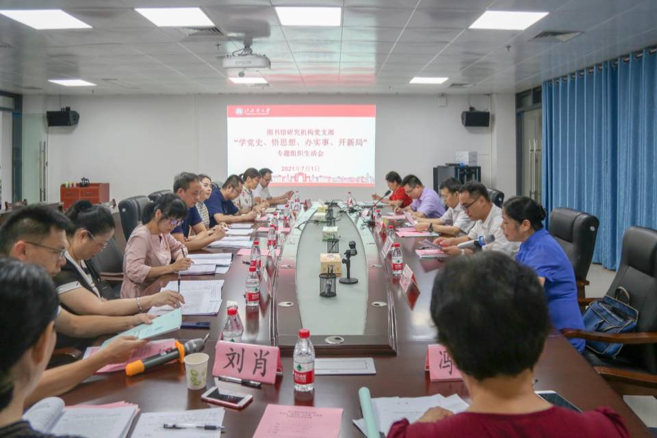 7月1日下午,图书馆研究机构党支部在图书馆七楼会议室举行“学党史、悟思想、办实事、开新局”党史学习教育专题组织生活会。校长林基明以支部普通党员身份参会,自治区党委党史学习教育第十五巡回指导组组员、广西师范大学化学与药学学院党委副书记、纪委书记梁毅到会指导。支部副书记陈一红主持。