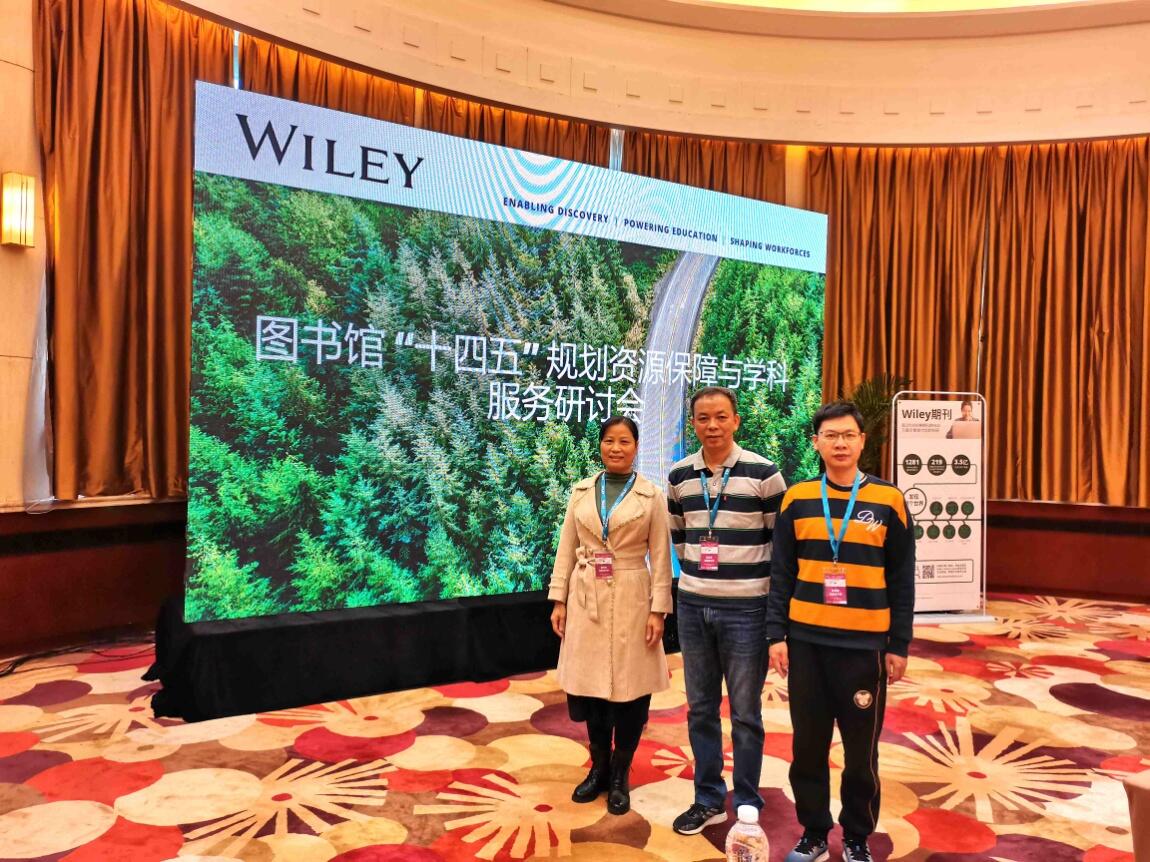 当前疫情下,为帮助图书馆应对数字化资源建设转型与升级的挑战,提升学科服务与知识服务能力,近日,由贵州大学图书馆和Wiley公司联合主办的图书馆“十四五”规划资源保障与学科服务研讨会在贵阳召开,我馆梁永忠、周华辉、黄炳祥3位教师参加了会议。