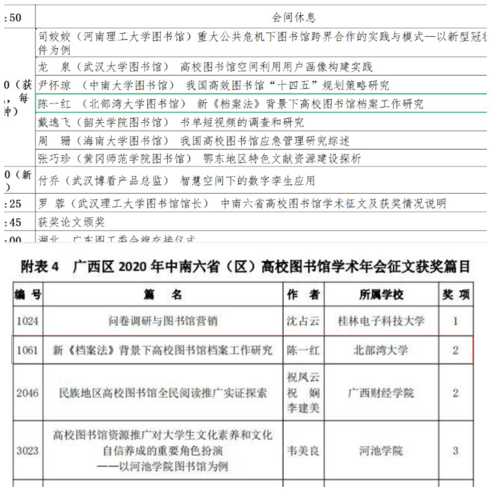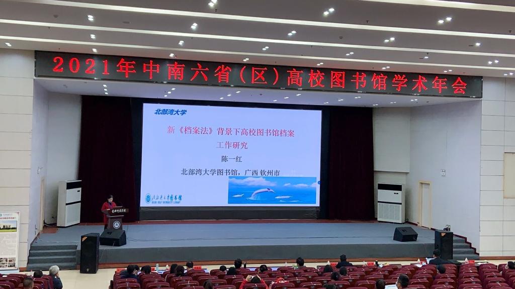 湖北省教育厅高教处处长张锦枫等领导出席会议并致辞。学术年会的主题是“后疫情时代高校图书馆的危机、挑战与发展”,会上,南京大学叶继元教授做了题为《质量提升与评价:后疫情时代高校图书馆的改革方向与重要抓手》的主旨报告。学术研讨会前,中南六省(区)高校图书馆馆员积极撰写文章参与活动,主办方收到204篇学术征文并进行评比,我校图书馆陈一红副馆长的论文《新<档案法>背景下高校图书馆档案工作研究》获二等奖,在这次会上作为获奖论文进行了PPT汇报交流。