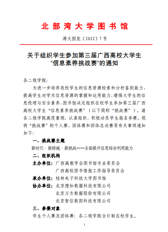 关于组织学生参加第三届广西高校大学生“信息素养挑战赛”的通知