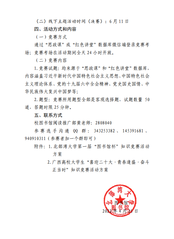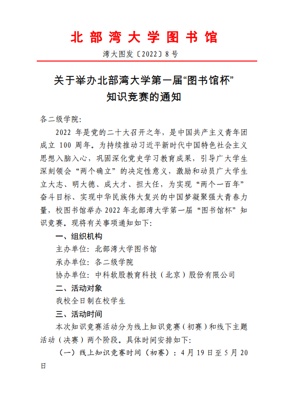 关于举办北部湾大学第一届“图书馆杯”知识竞赛的通知