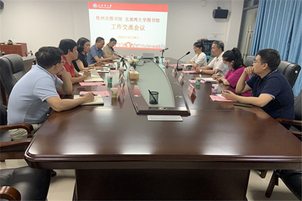座谈会上,翁少娟副馆长对钦州市图书馆同仁的来访表示热烈欢迎,从资源建设、读者服务等方面介绍了我校图书馆的发展,希望加强与钦州市图书馆在文献资源共建共享和文化宣传等领域的合作。曾庆勇馆长介绍了钦州市图书馆在推进全民阅读、地方文献数字化建设、开展“走读钦州”等活动助力书香钦州建设的工作情况;刘琪文副馆长希望通过校地联建,我校师生多参与钦州市文旅推广等活动,欢迎我校师生在钦州市图书馆举办毕业展、学术著作专栏,创新合作形式和领域。