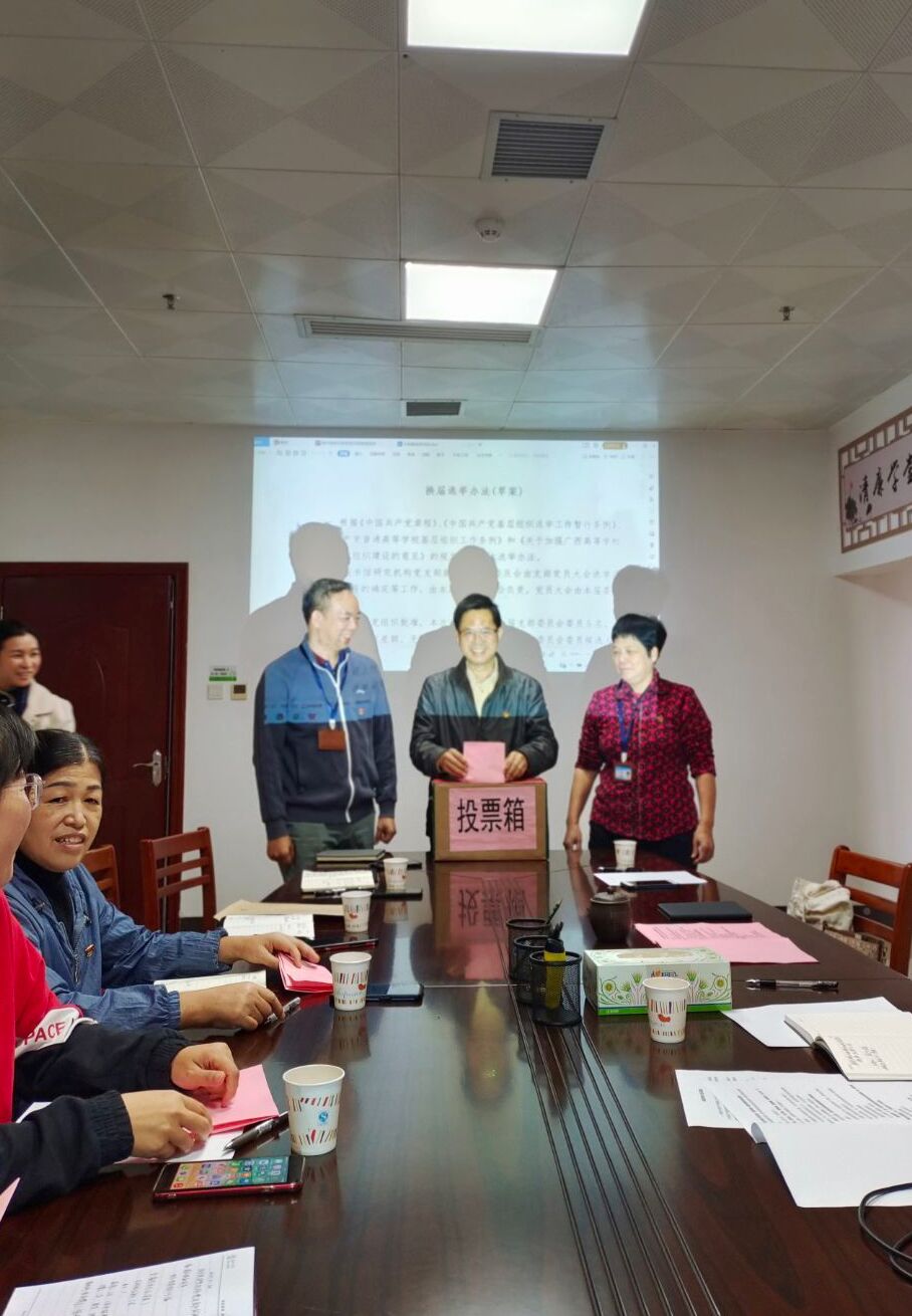 翁少娟同志宣读了选举办法,黄炳祥同志介绍了新一届支部委员候选人的产生和个人基本情况,换届选举工作按大会议程顺利开展。经支部大会无记名投票,陆安山、翁少娟、黄炳祥、熊喜燕、刘肖五位同志当选为新一届支部委员,随后召开了新一届党支部第一次支委会,陆安山同志当选为新一届支部书记,并确定新一届支委分工:翁少娟同志担任党支部副书记,黄炳祥同志担任组织委员, 熊喜燕同志担任纪检委员,刘肖同志担任宣传委员。