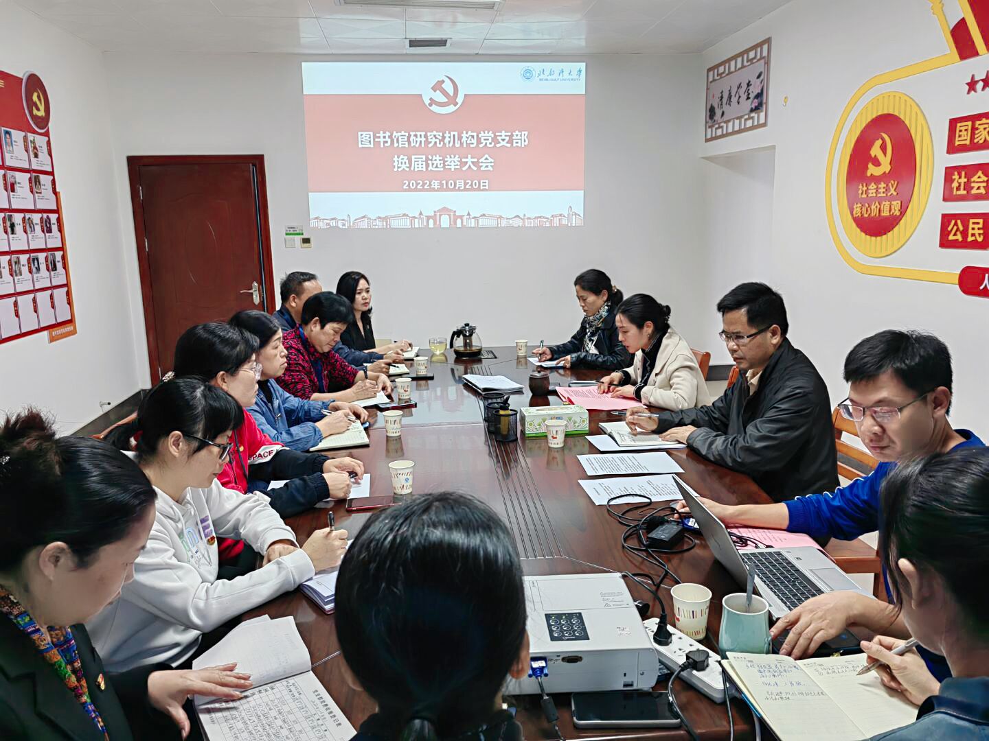 正值党的二十大召开之际,图书馆研究机构党支部迎来新一届的换届选举。根据机关党委2022年10月13日关于支委委员候选人预备人选的批复,于10月20日召开党支部大会进行换届选举,会议由翁少娟同志主持,图书馆研究机构党支部全体党员参会。