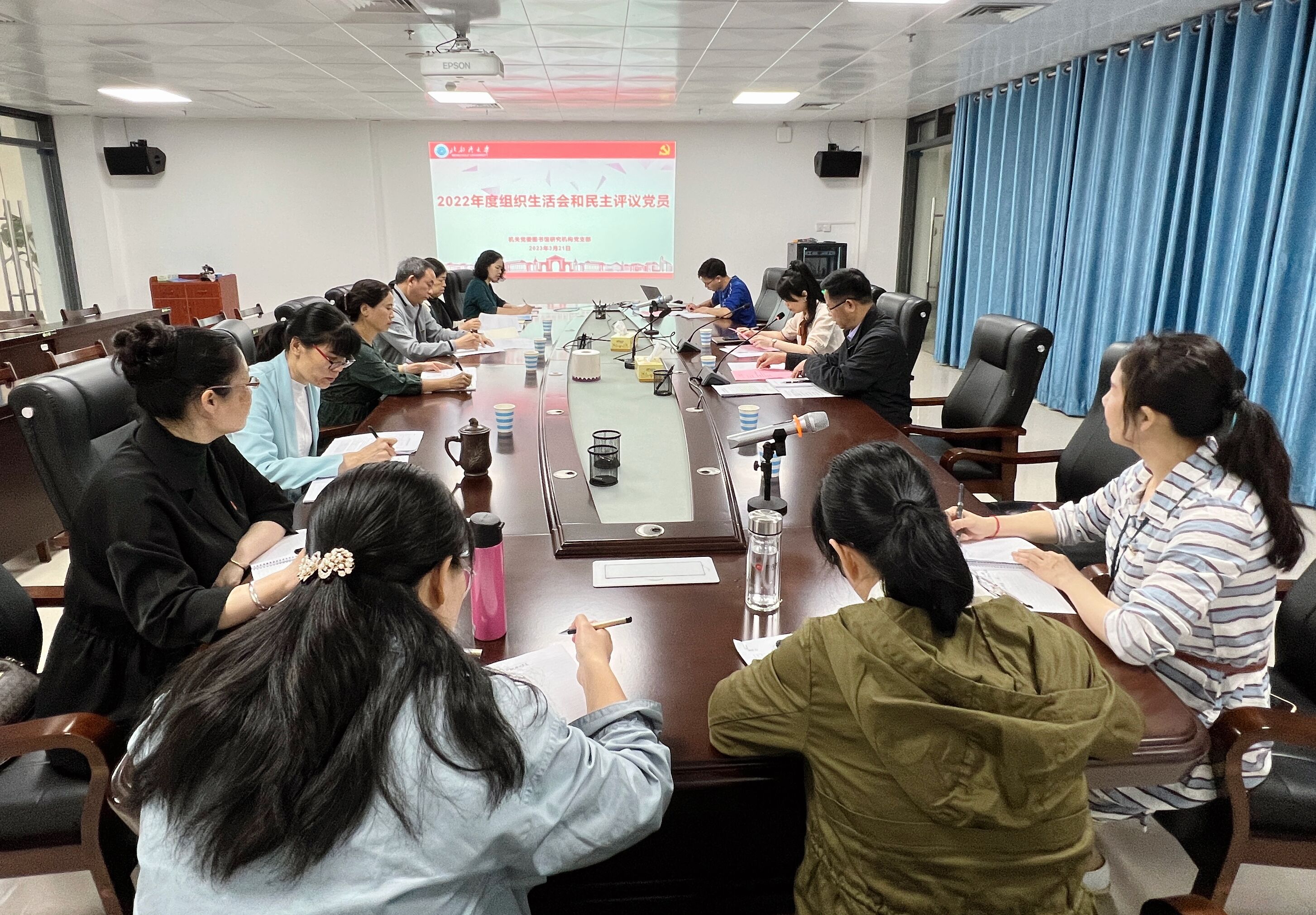 根据学校党委组织部的工作安排,我支部于2023年3月21日在图书馆会议室召开2022年度组织生活会和开展民主评议党员会。为提高此次会议的质量,召开组织生活会前支部已于3月15日组织党员专题学习党的二十大报告和党章,由支部书记陆安山同志领学了新修订的《中国共产党章程》,副书记翁少娟同志领学了《党的二十大报告》,使党员同志们加深了对党的二十大精神和新党章的理解和领会,也更加全面、深刻的了解本次会议的目的和意义。机关党委统战委员雷婷同志到会指导工作。
