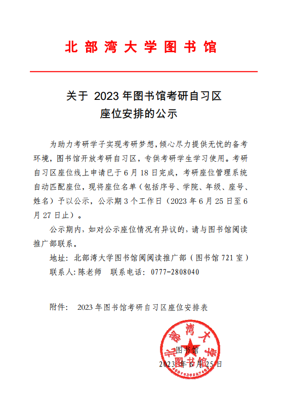 关于 2023年图书馆考研自习区座位安排的公示