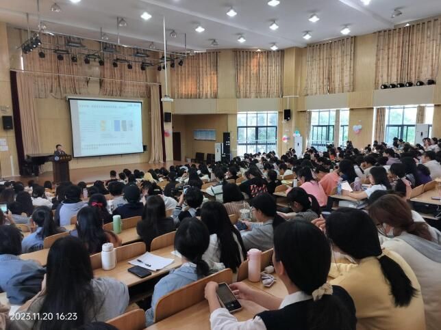 为了使我校学生更好地掌握毕业论文写作中有关文献检索、文献阅读及论文智慧排版等学术规范性,11 月 20 日,图书馆在一号教学楼报告厅举行“科研入门指南,论文写作不难——毕业有约,CNKI 伴你成长”论文写作培训,本次培训的主讲是 CNIK 中国知网高级顾问戴易易老师,来自教育学院大三、大四的 300多名学生参加了此次培训。