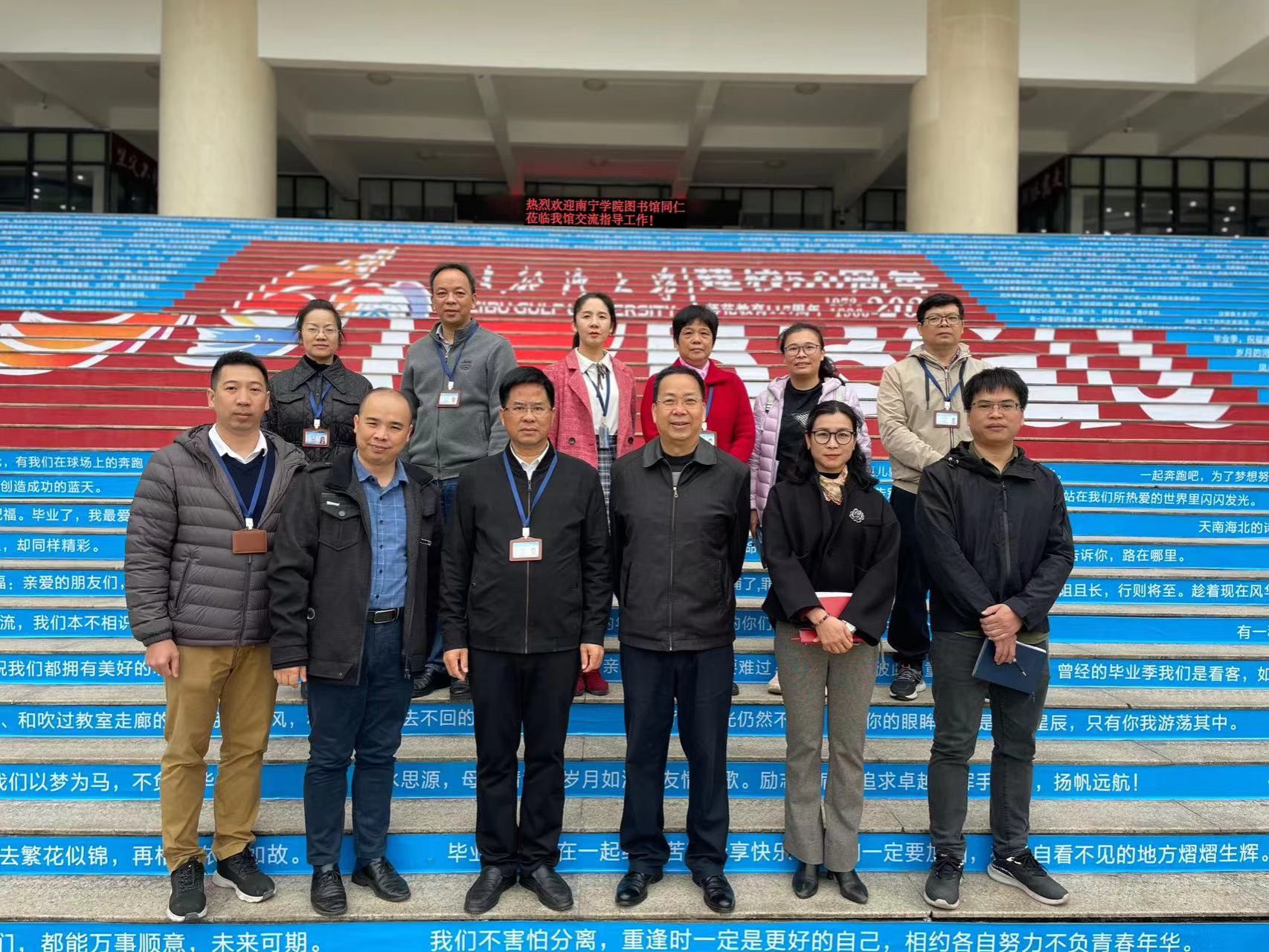 12月4日上午,南宁学院图书馆一行4人在卢玉光副馆长带队下到我馆参观交流,我馆陆安山馆长、翁少娟副馆长及办公室、资源建设部、信息咨询部、流通阅览部、技术保障部和阅读推广部等部门主任热情接待了来访同仁。