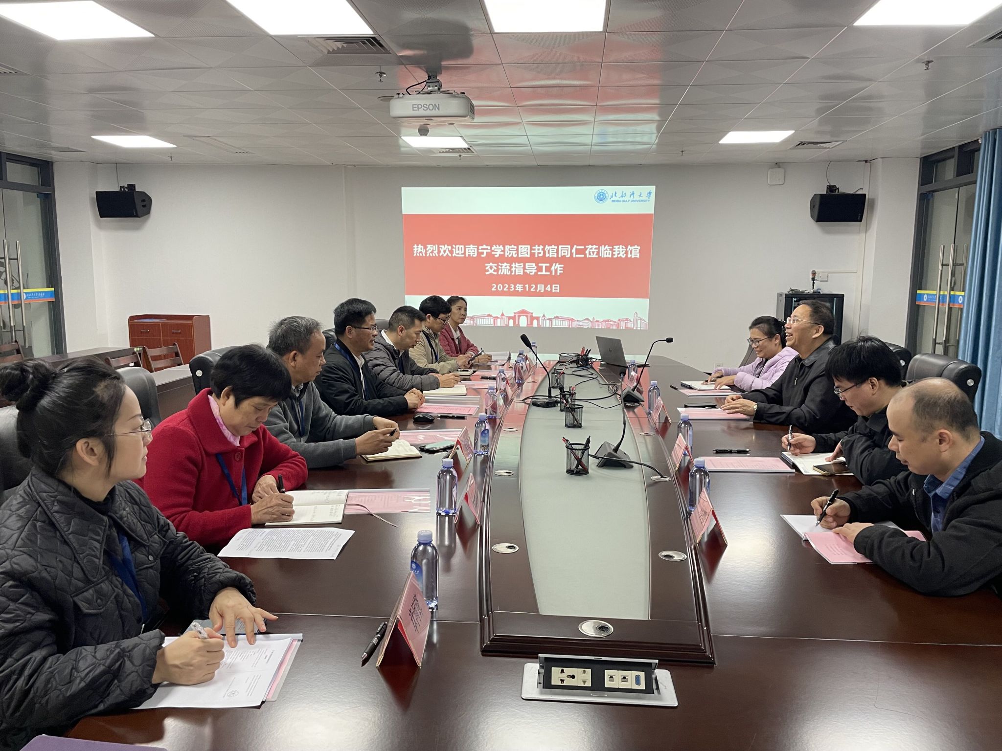 在座谈会上,双方馆长首先介绍各自与会人员,随后我馆陆安山馆长向同仁介绍了我馆概况及文献资源建设、阅读推广活动等方面的经验和做法,在座谈交流中,南宁学院图书馆一行主要了解了我馆图书馆建设方面的经验和做法,重点围绕优化读者服务、学科服务,营造宜读书好读书环境等进行交流研讨。与会人员还围绕着图书文献资源采访、流通阅览服务、信息资源建设与利用、技术保障、阅读推广等工作开展了深入交流。