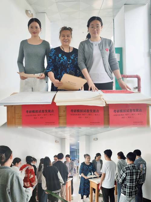 图书馆信息咨询部工作人员正在为考生们发放试卷