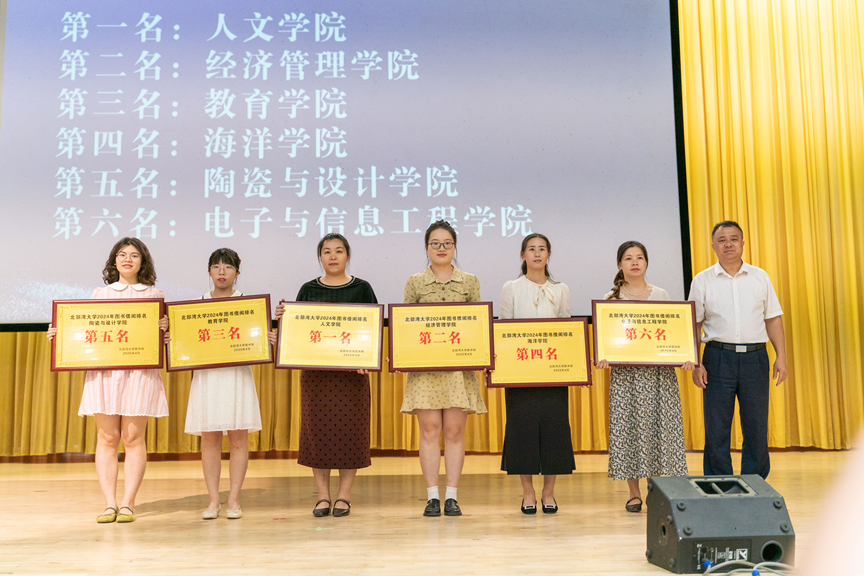 接着,领导嘉宾为“北部湾大学2024年度借阅排行前六名”、“北部湾大学2024年度入馆人次排行前六名”的学院以及2025年寒假阅读活动获奖个人颁奖。这些奖项不仅是对学生阅读成果的肯定,更激励师生共建书香校园。