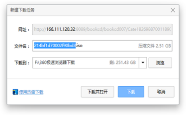 使用“普通下载”功能或者“远程下载”功能,请使用360极速浏览器和迅雷下载,这两个软件安装完成后点击“普通下载”功能或者“远程下载”功能会弹出一个小的对话框,可以直接点击下载按钮进行下载。